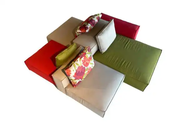 Composizione a moduli 225x270 cm, rivestimento in tessuto completamente sfoderabile. Visibile a Treviso.