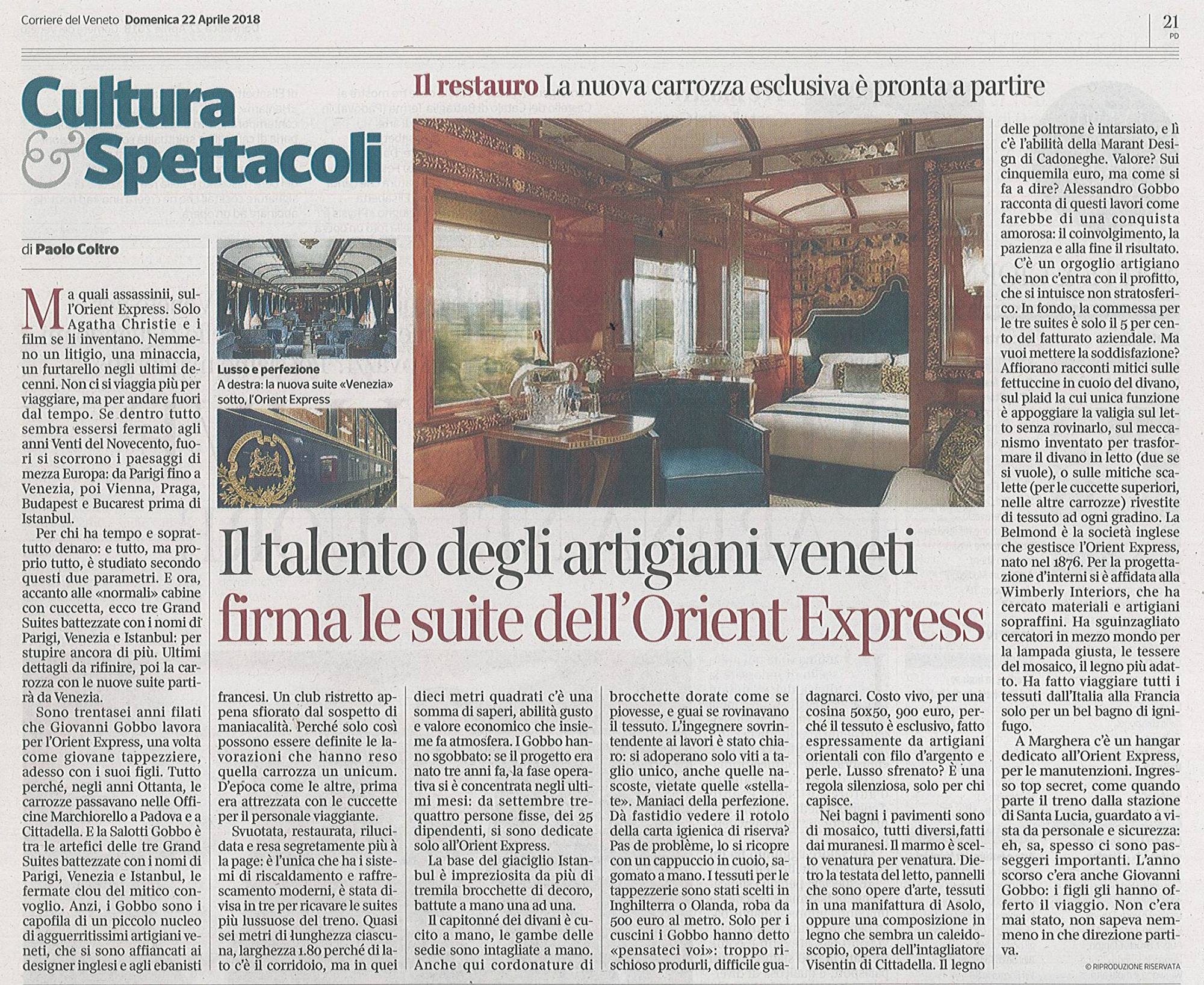 Il fascino dell’Orient Express e delle pregiate lavorazioni che abbiamo realizzato per le nuove Grand Suites raccontati in questo articolo su La Tribuna di Treviso del 25 aprile scorso.