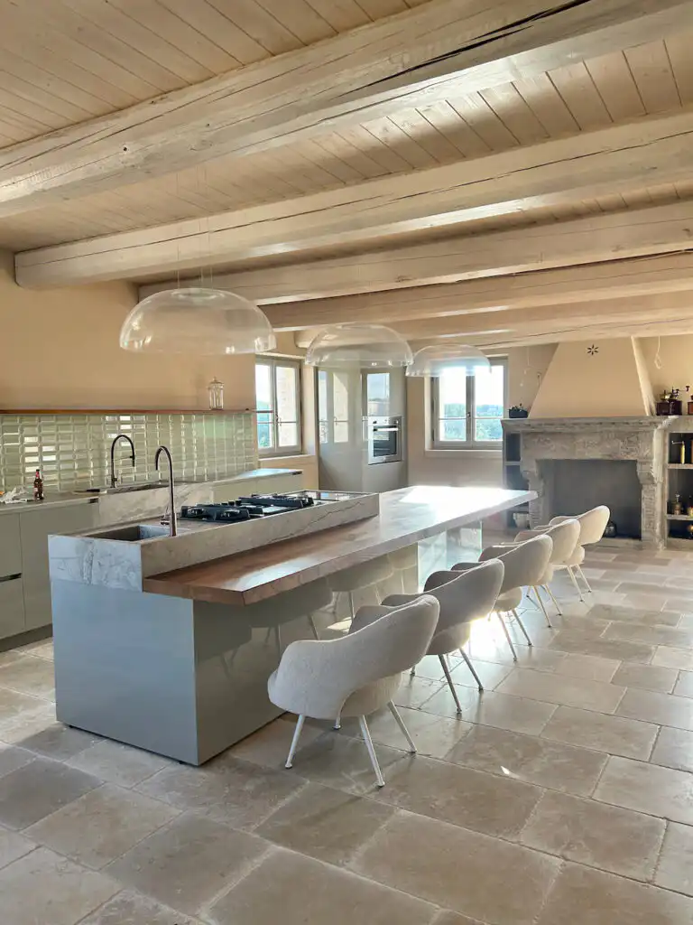 Per la splendida cucina sono state selezionate le poltrone Aki, che uniscono comfort e design.