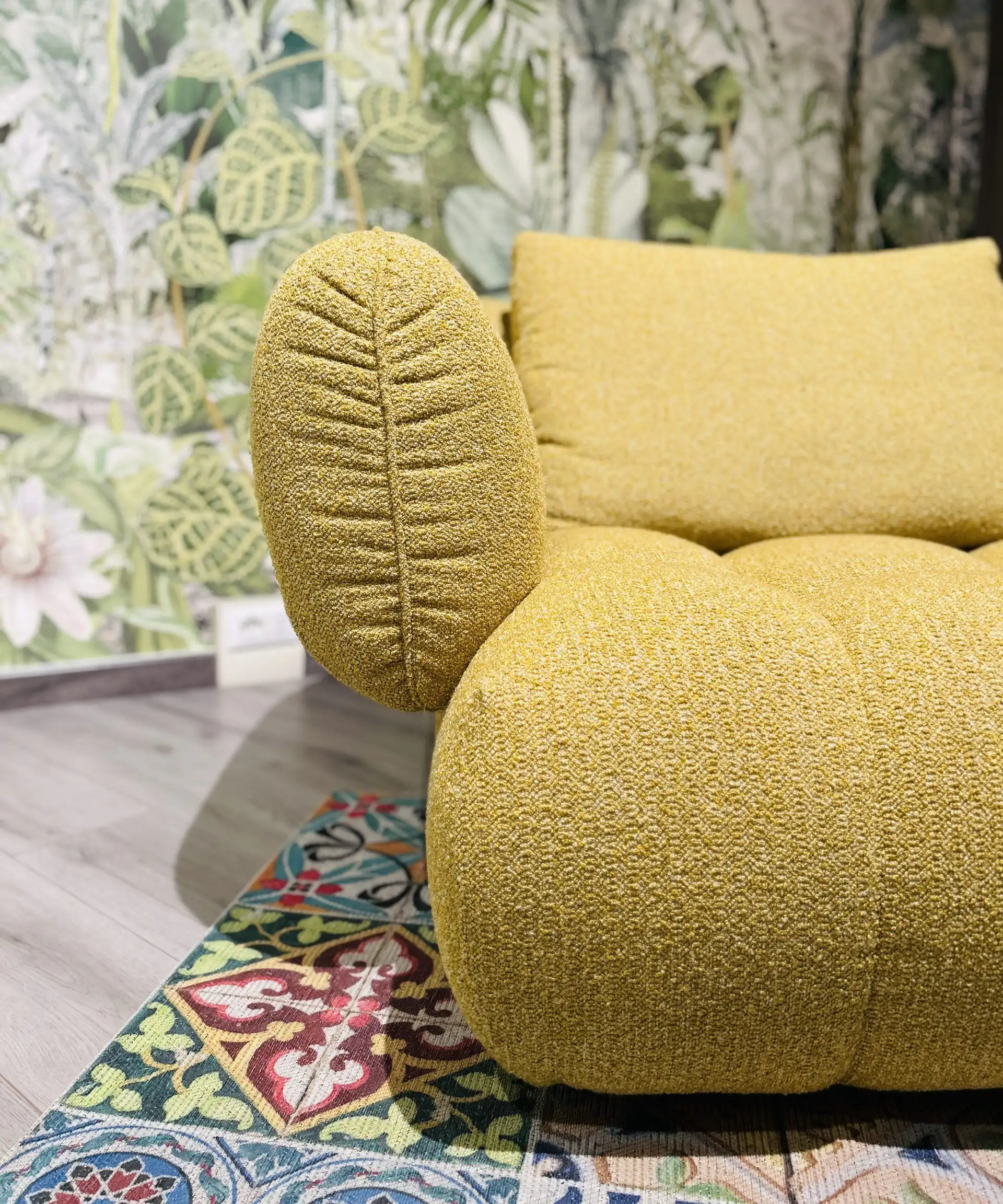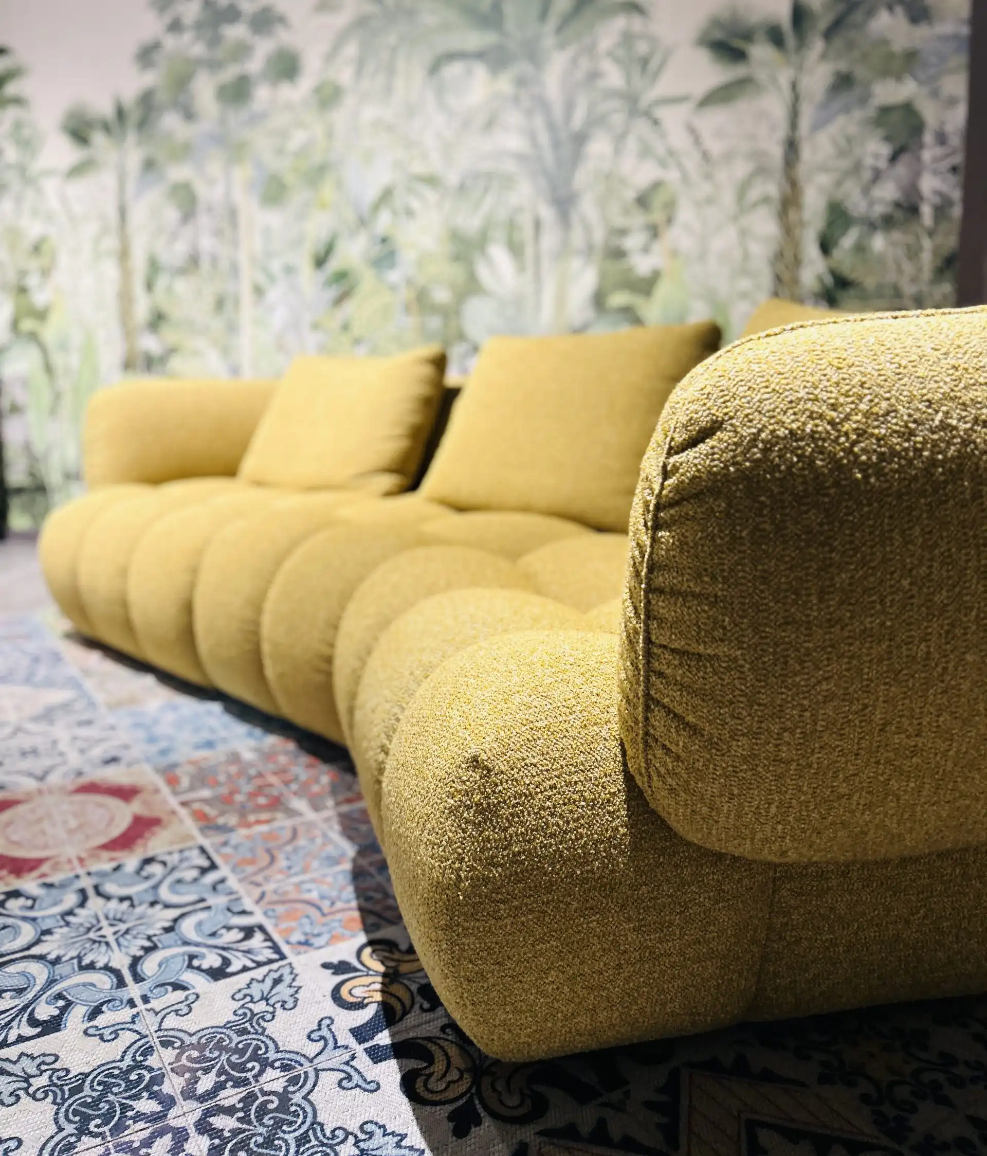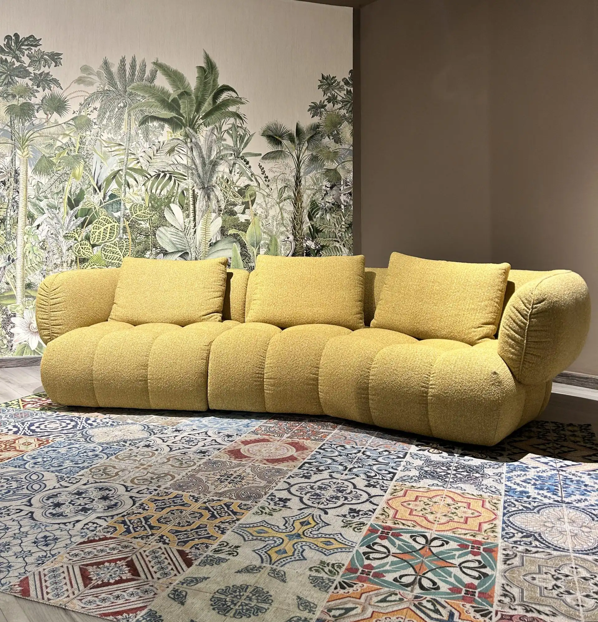 Composizione Laguna da 325×270 cm rivestita in tessuto lavabile antimacchia. Visibile nel negozio di Treviso.