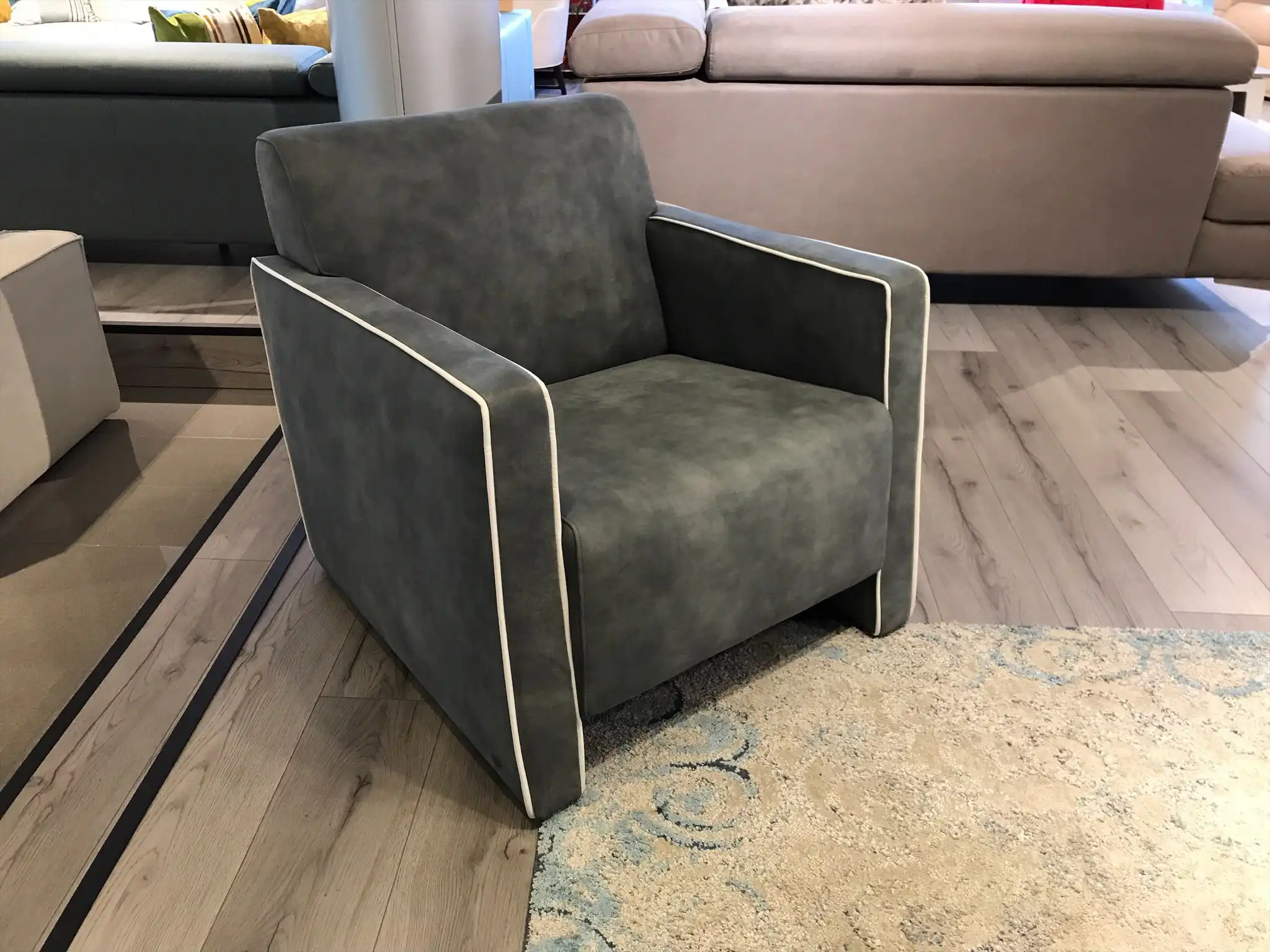 Poltrona Maki 100×91 cm rivestita in pelle. Visibile nel negozio di Treviso.