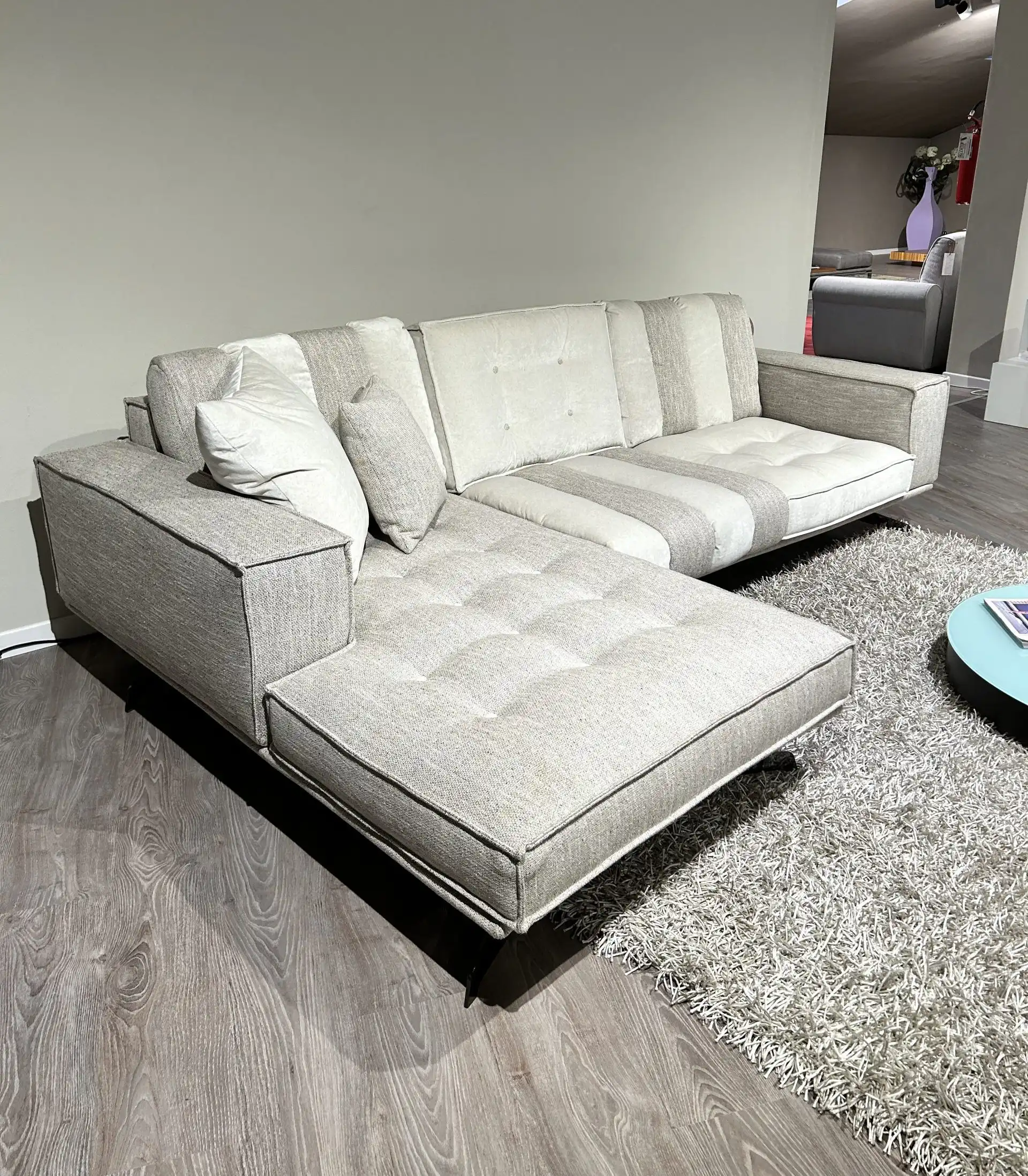 • Composizione 342×107/142 cm rivestito in tessuto lavabile antimacchia. Grazie al movimento del bracciolo il divano si trasforma in un comodissimo e pratico divano letto. Visibile nel negozio di Treviso.