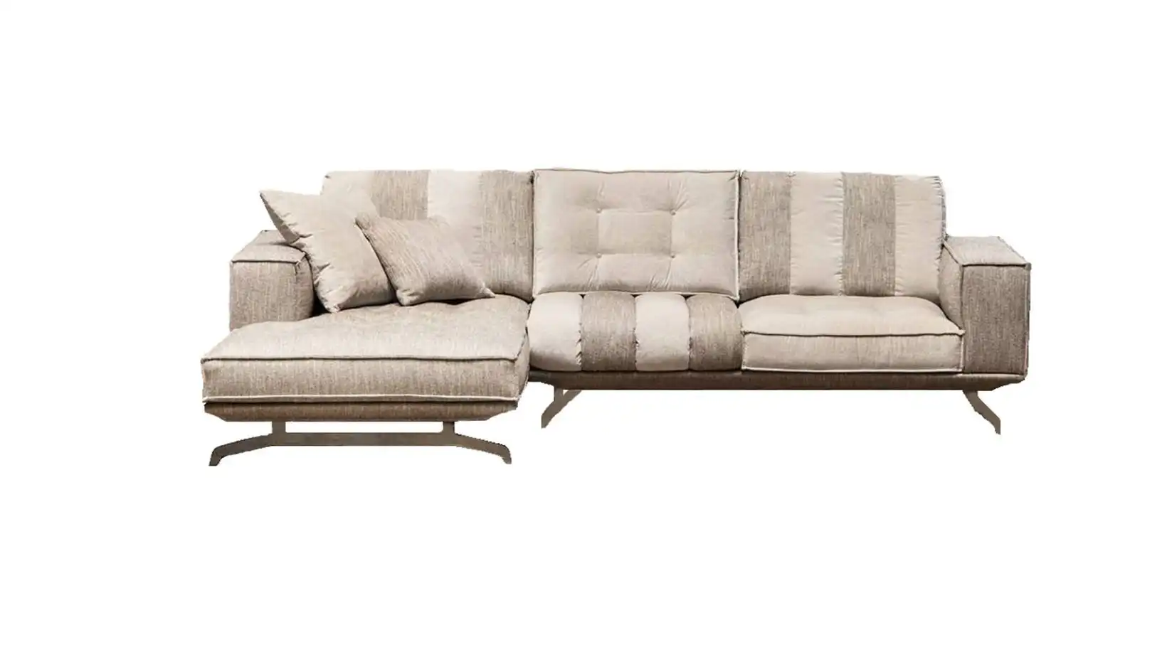 Divano 272×200 cm rivestito in tessuto lavabile antimacchia. Visibile nel negozio di Rosà.