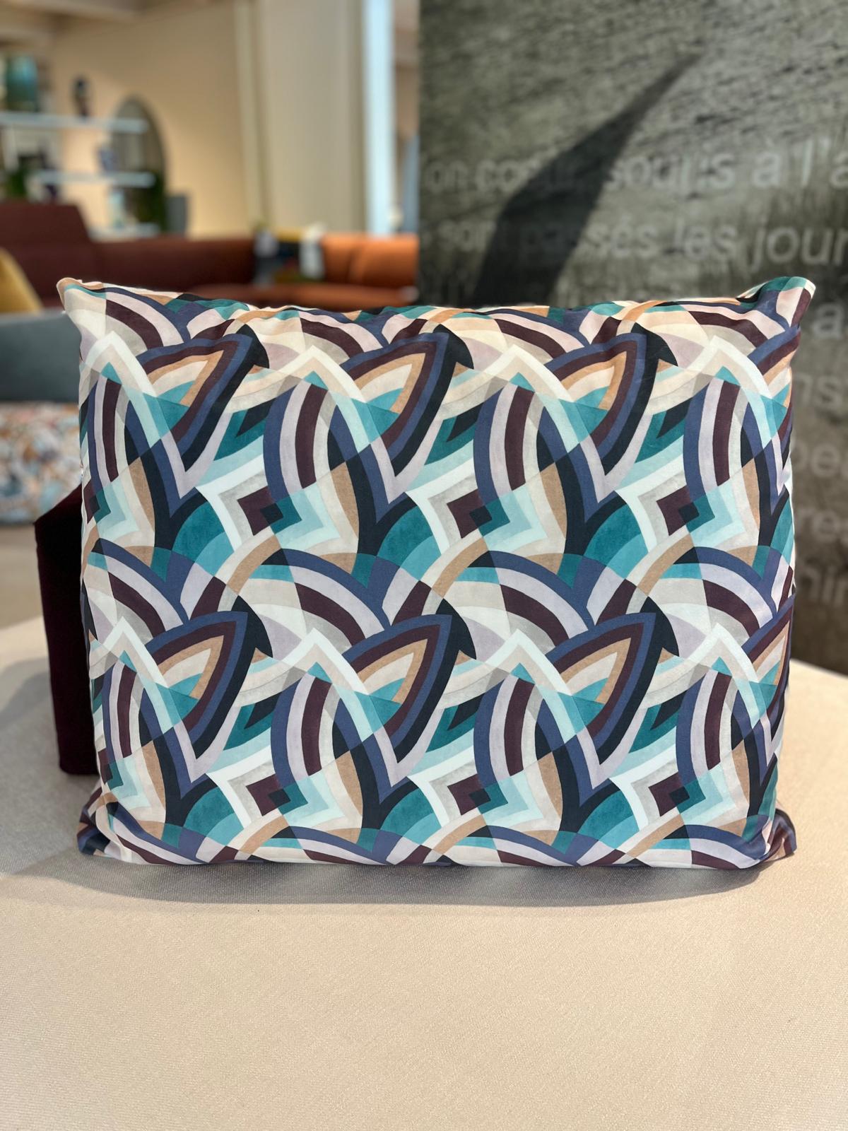Composizione 342×107/142 cm rivestito in tessuto lavabile antimacchia. Grazie al movimento del bracciolo il divano si trasforma in un comodissimo e pratico divano letto. Visibile nel negozio di Treviso.