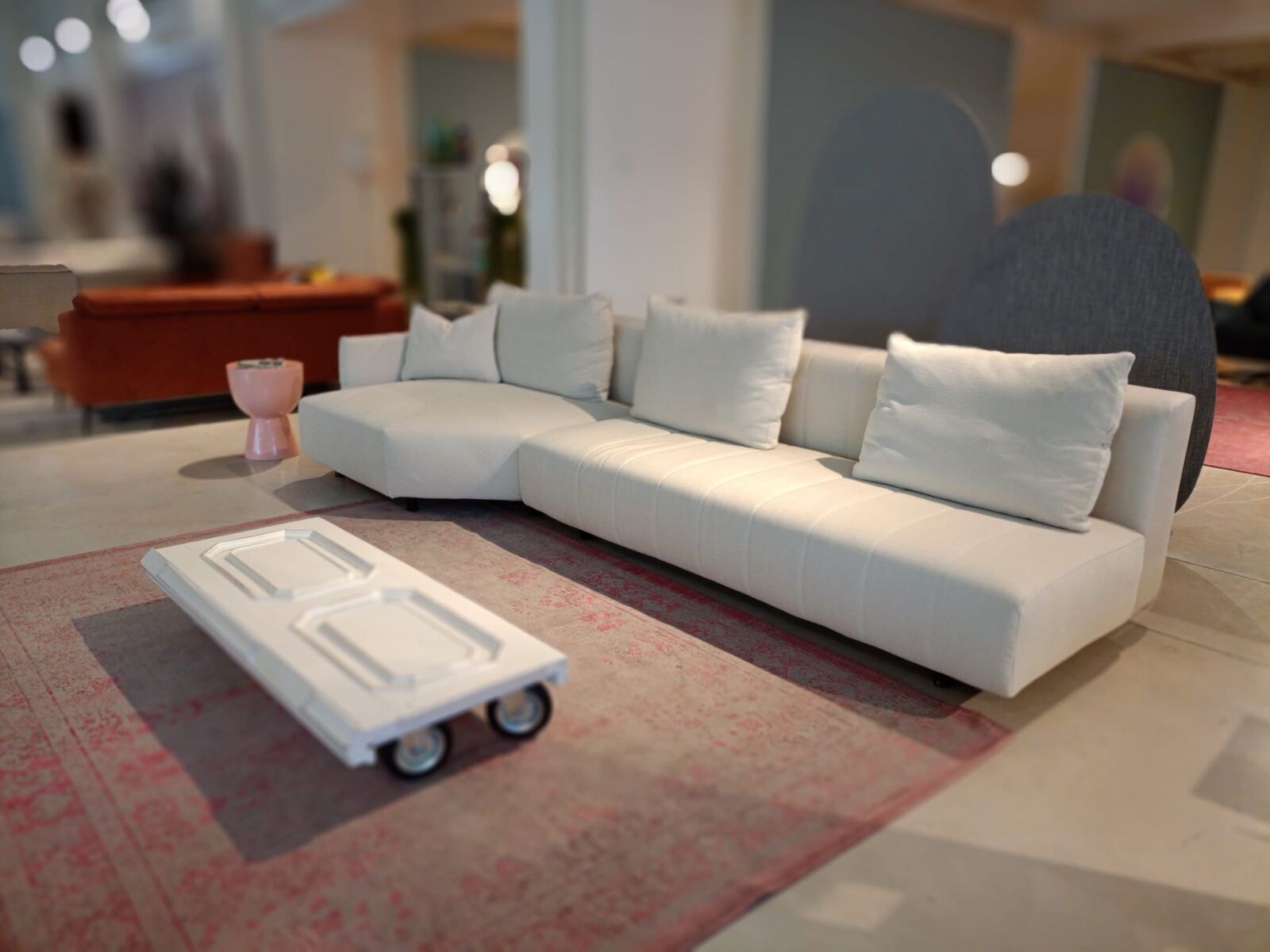 Grazie al movimento del bracciolo il divano si trasforma in un comodissimo e pratico divano letto.