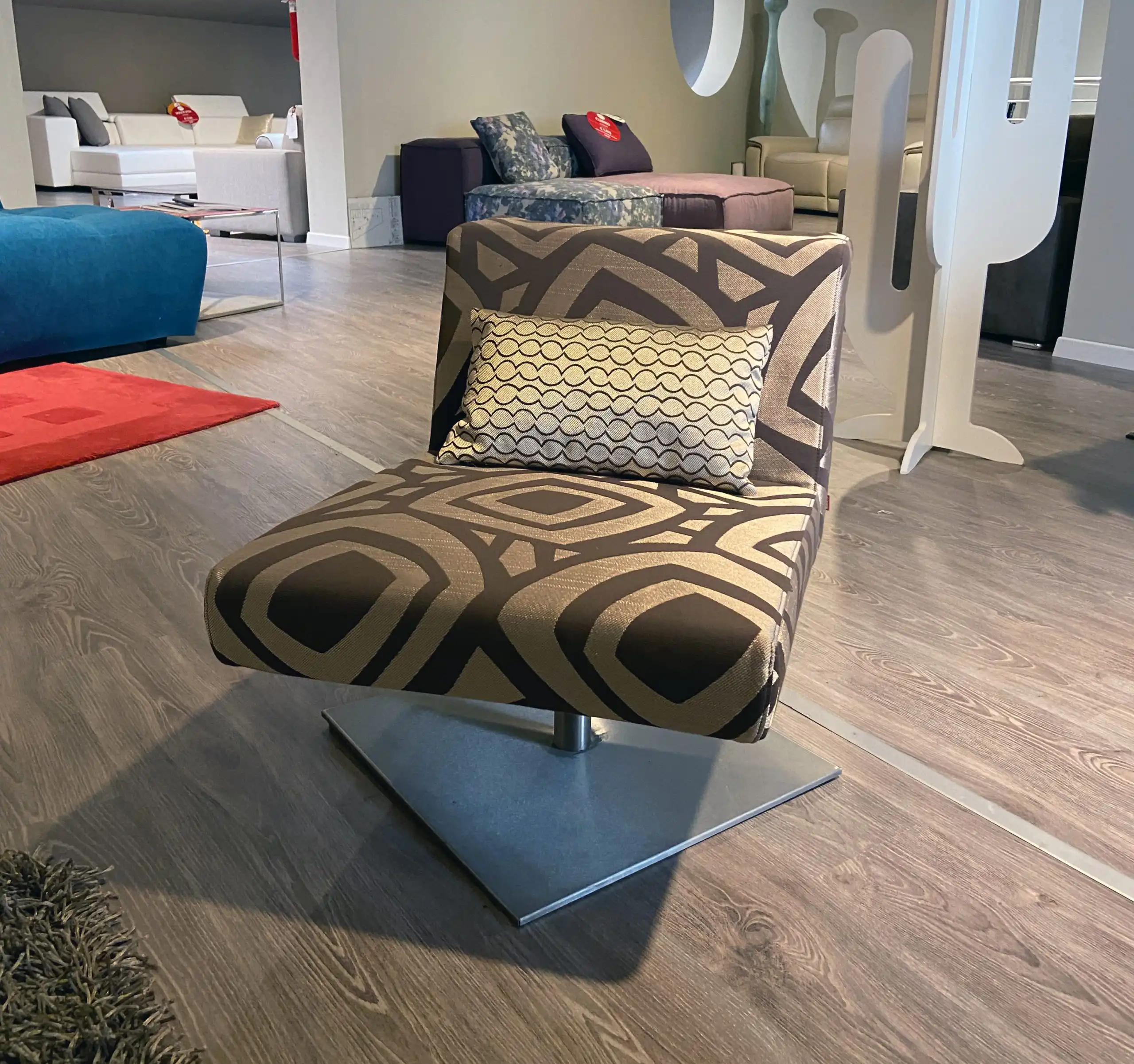 Poltrona Maki 100×91 cm rivestita in pelle. Visibile nel negozio di Treviso.