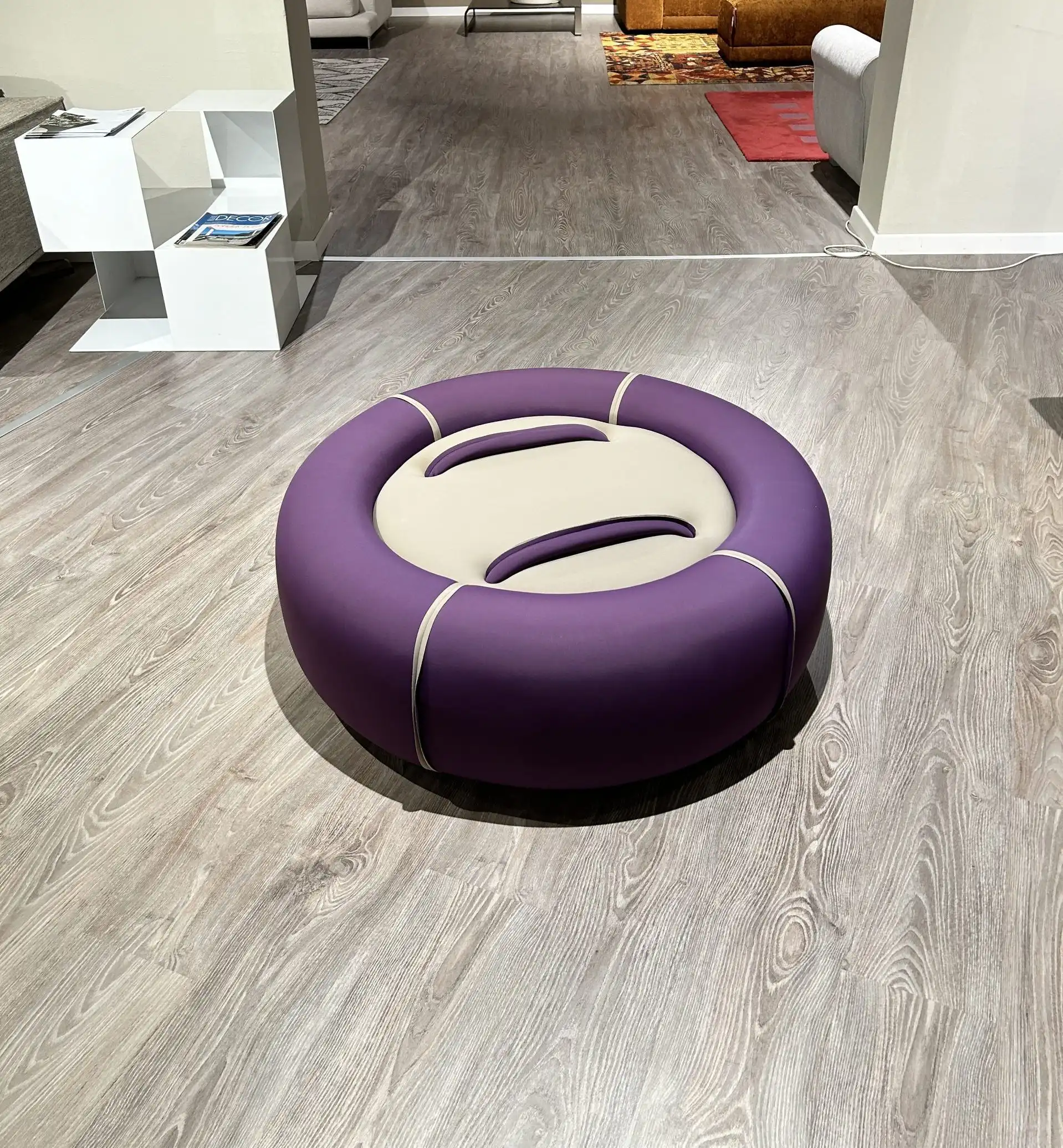 Poltrona Maki 100×91 cm rivestita in pelle. Visibile nel negozio di Treviso.