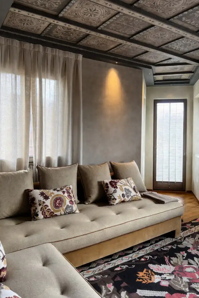 La sfida era valorizzare un’abitazione tipica, caratterizzata da dettagli architettonici di grande pregio, tra cui uno splendido controsoffitto dipinto che domina la zona living. Il concept ha puntato su linee classiche e raffinate, sull’attenta selezione di materiali caldi e materici e su una palette di colori sobri, ma mai scontati.